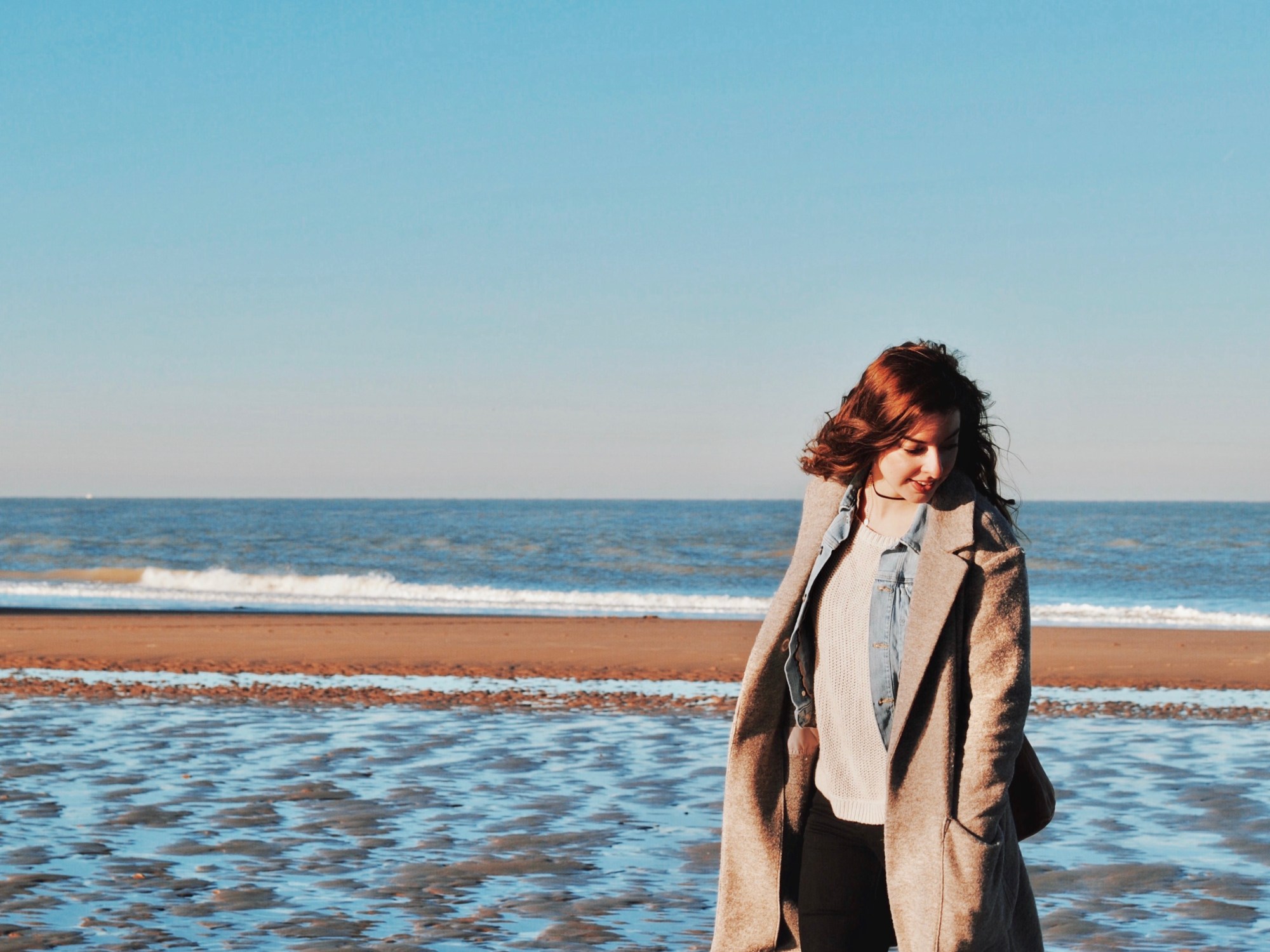 大概是人生第一次穿著冬衣外套、圍著厚厚圍巾來到海邊,踩著短靴在沙灘上奔跑。海風很冷、很凍,臉頰被吹得有點刺痛,面著暖陽卻還是忍不住咧嘴地笑了,是海阿。